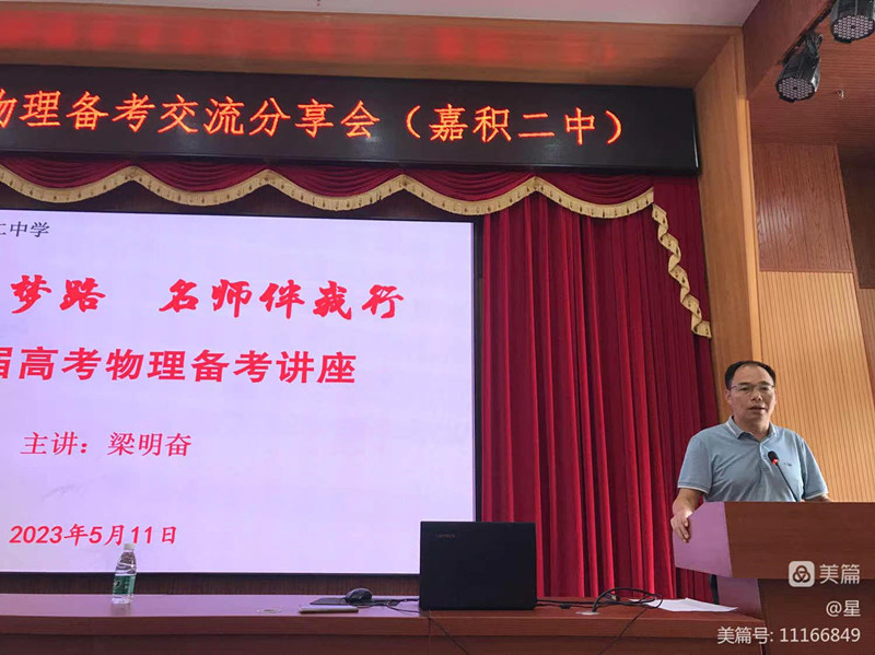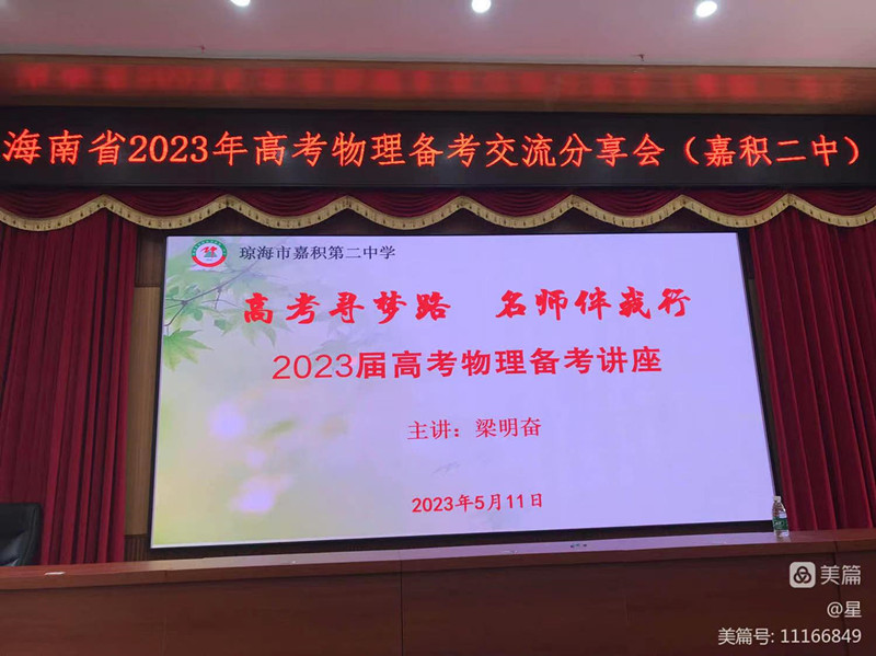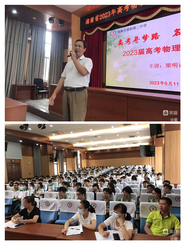 发表时间:2023-05-15 17:29来源:教务处、教研室 2023年5月11日下午,我校举行2023年高考物理备考交流会,海南中学特级教师梁明奋老师为我校高中部物理老师以及高二、高三物理班学生作了一场精彩的高考物理备考交流分享报告,受到师生们热烈欢迎。