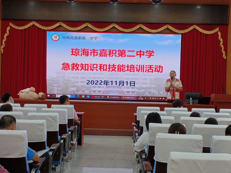 发表时间:2022-11-01 17:15 为了进一步提高学校教职工对应急救护措施的认识,提升急救技能和应急能力,守护校园安全。11月1日,由琼海市教育局主办,琼海市红十字会协办的2022年急救知识和技能培训活动走进嘉积二中。陆泰君副校长等校级领导及教师代表近50人参加了本次培训。