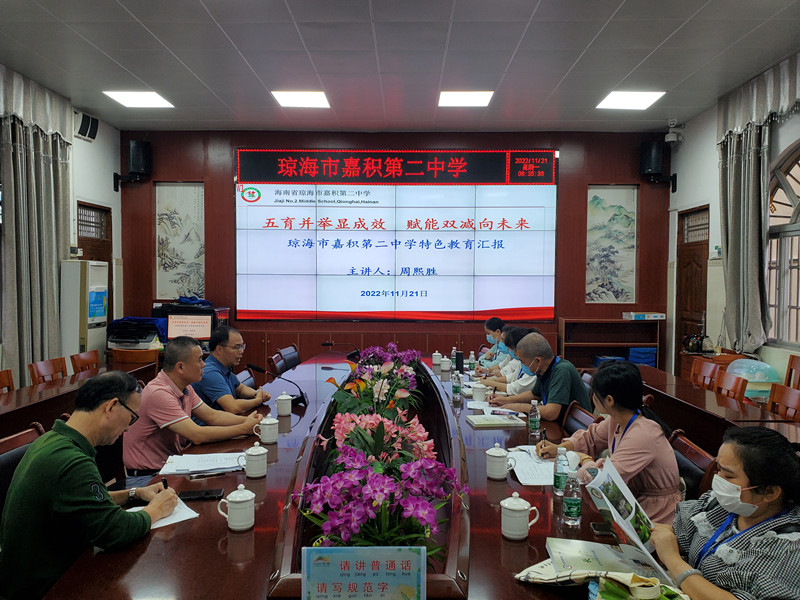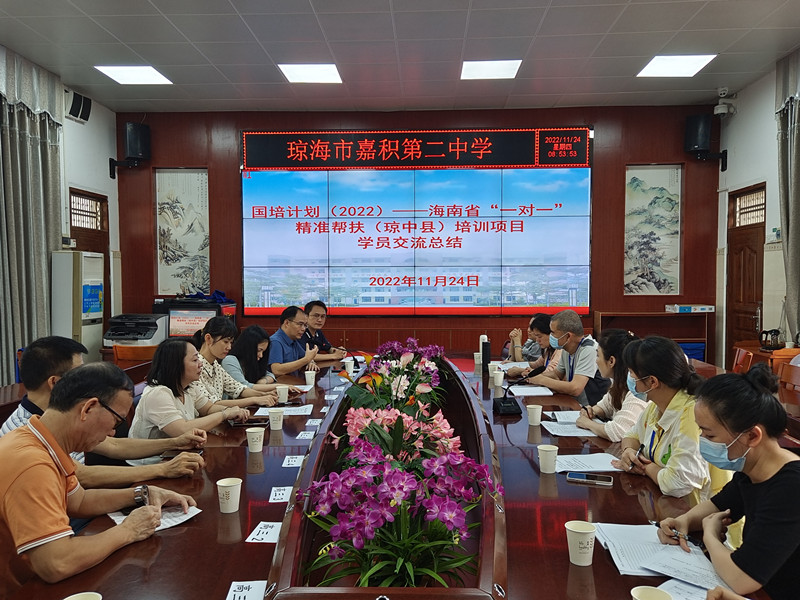 发表时间:2022-11-24 18:23 为响应新时期教育改革发展要求,进一步促进教师队伍建设,以课堂教学改革为主阵地,促进优质教育资源共享,进一步贯彻落实国培计划(2022)——“一对一”精准帮扶项目的精神,2022年11月23日上午,嘉积二中迎来了琼中县“跟岗研修”的6名参训教师。 本次跟岗研修主要有学员跟岗听课,参与科组活动等内容。 11月21日上午,在周熙胜校长的带领下嘉积二中的相关领导和指导老师们在图书馆会议室召开国培计划(2022)——海南省“一对一”精准帮扶(琼中县)培训项目学员见面会。周校长主要从办学理念、办学方针、课程开发、校园文化建设、德育工作、党建工作、后勤工作、教师队伍建设以及“双减”政策下学校好的做法等方面为琼中县的老师们介绍了嘉积二中的基本情况。